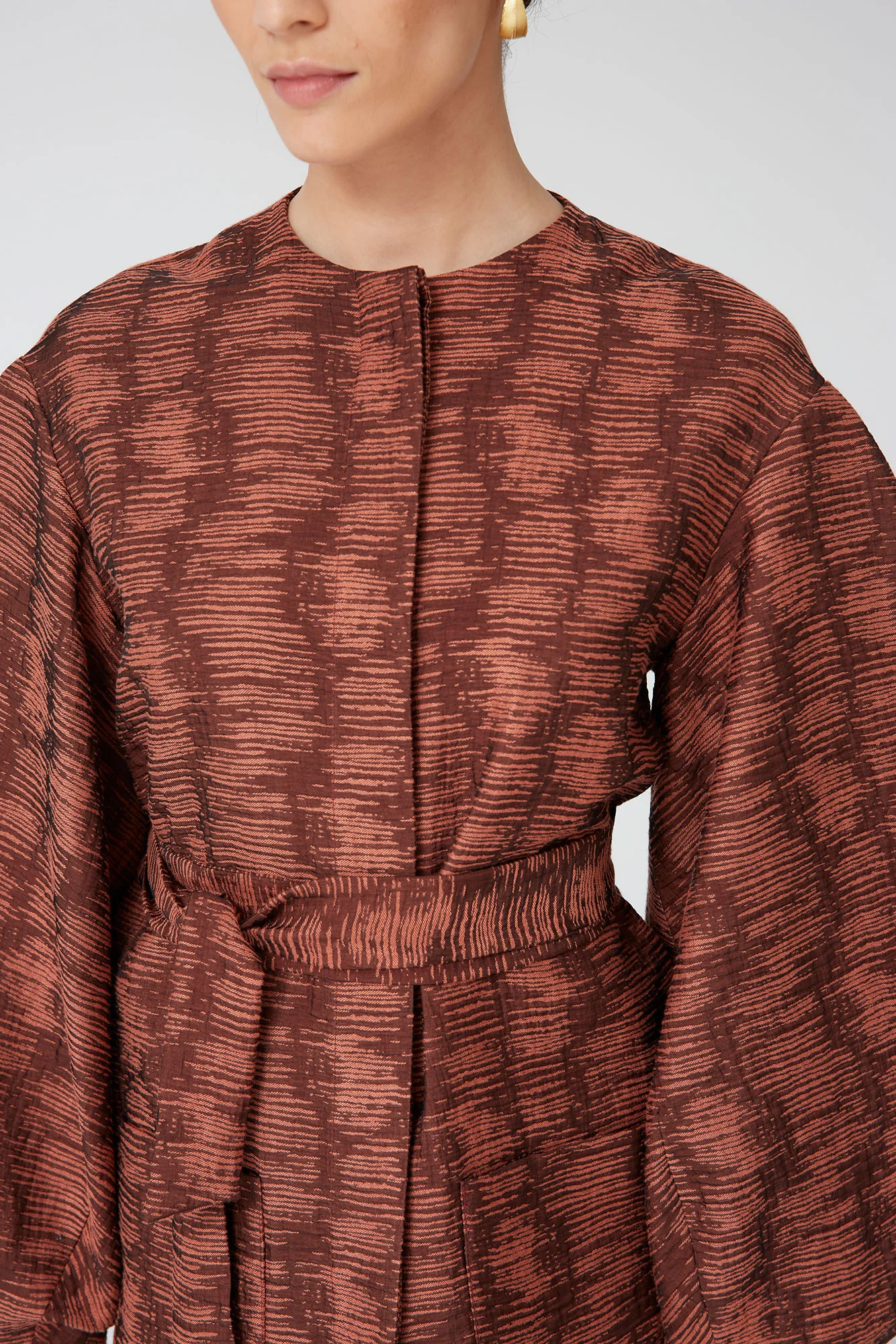 Fabricada en un tejido estructurado con acabado premium, la Chaqueta Chloe ofrece comodidad, caída impecable y una estética editorial. Su tono marrón cálido la convierte en una pieza versátil que combina fácilmente con tonos neutros, dorados o monocromáticos.