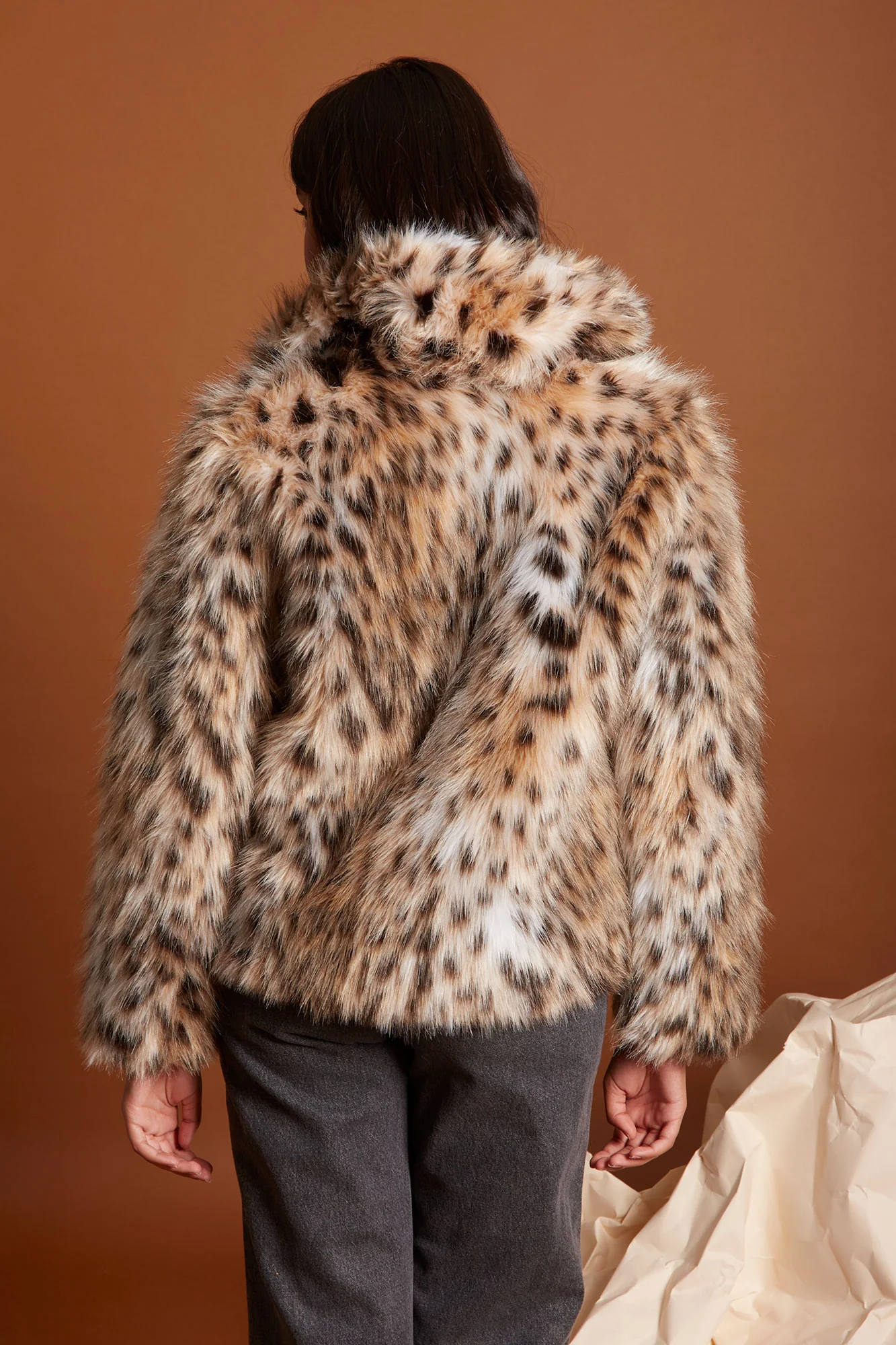 La chaqueta Leana de Coosy es la prenda perfecta para quienes buscan sofisticación, tendencia y confort en un solo diseño. Con un acabado de efecto peluche y estampado animal en tonos naturales, este abrigo combina textura, volumen y elegancia para elevar cualquier look de invierno.
