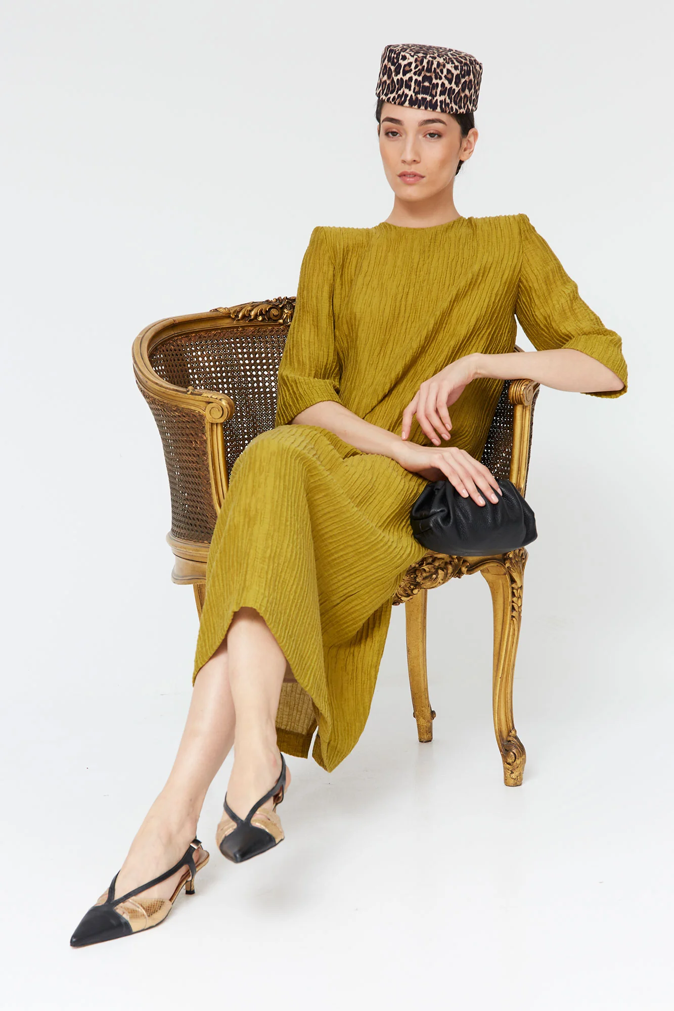 El Vestido Evelina es una pieza sofisticada y atemporal, pensada para mujeres que buscan elegancia con un toque distintivo. Confeccionado en un tejido fluido y texturizado, presenta una silueta recta de largo midi que estiliza la figura y aporta una caída impecable.