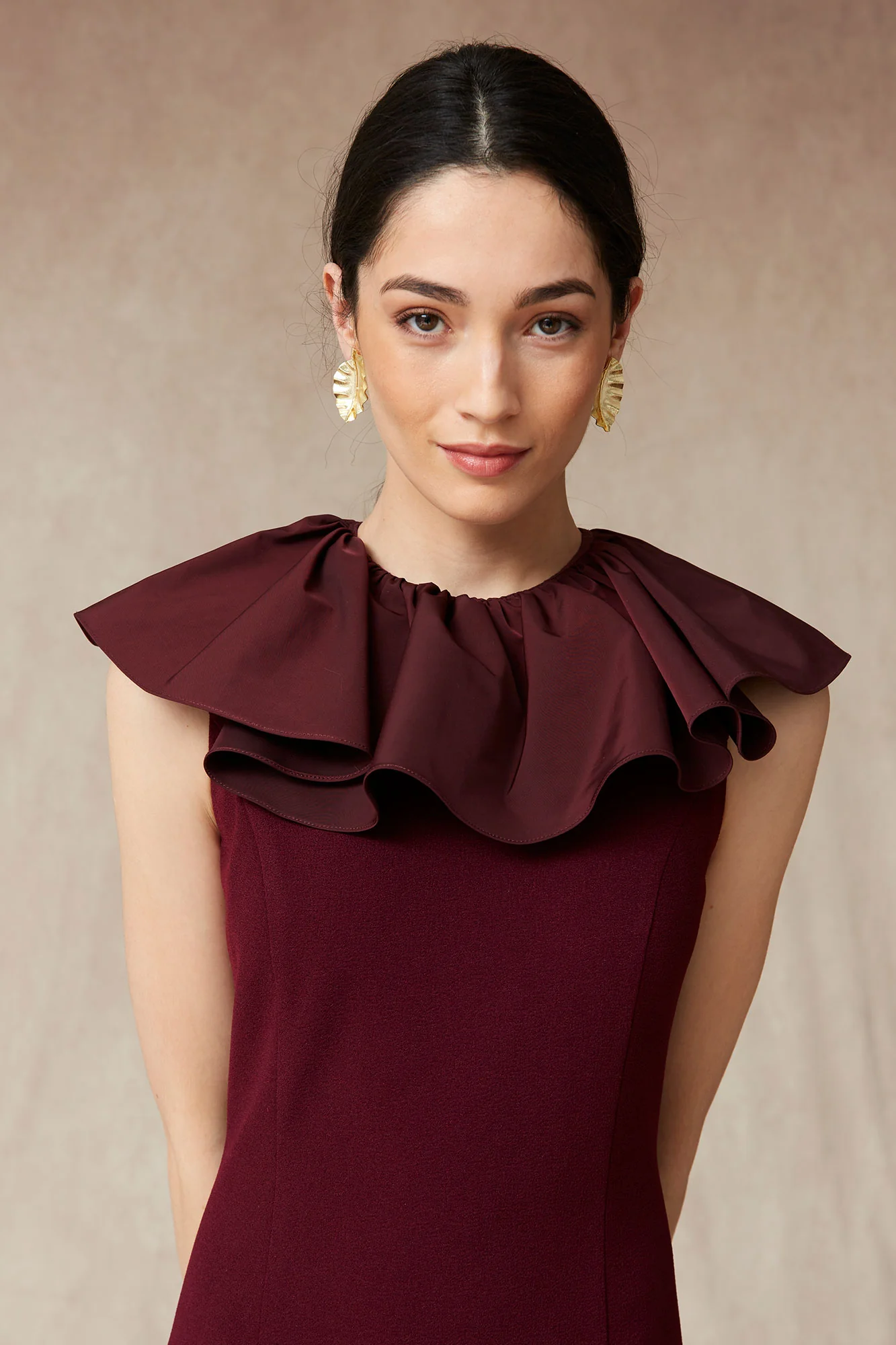 El Vestido Selene granate de Coosy es una pieza icónica que combina elegancia contemporánea y feminidad atemporal. Su diseño estructurado realza la figura con un cuerpo entallado y una falda midi de volumen que aporta movimiento y sofisticación. El volante en el escote añade un toque escultural que convierte este vestido en una opción perfecta para invitadas, eventos especiales o celebraciones formales.